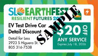 The first 50 test drivers will get a $20 Car Detailing discount plus a chance to win a complete interior/exterior detailing at Detail for Less in SLO.
