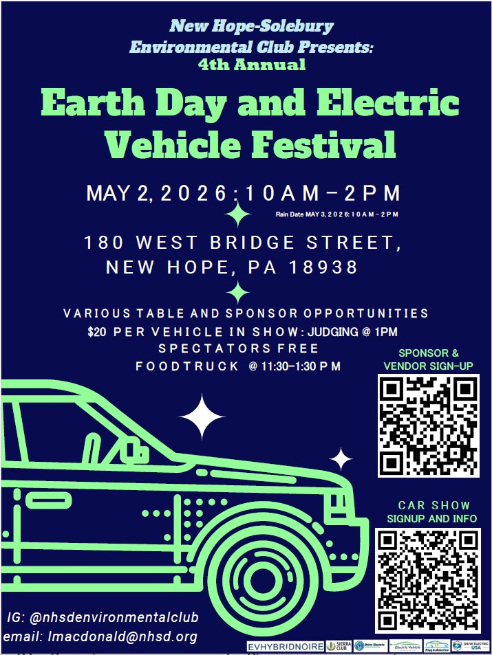 New Hope Solebury School District HS ENVCLUB Earth Day and EV Carshow