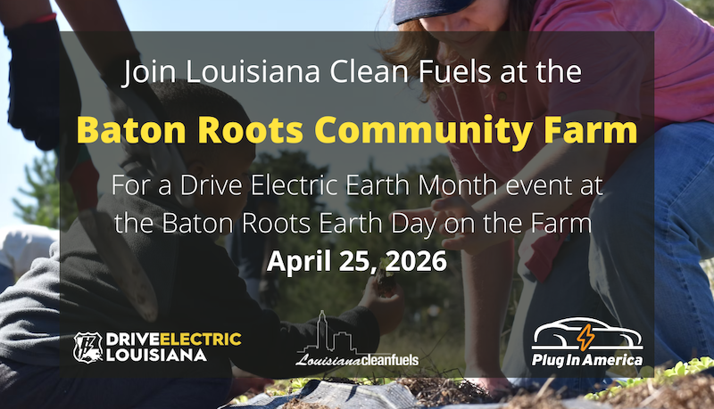 Join Louisiana Clean Fuels and Drive Electric Louisiana at the Baton Roots Community Farm & Garden Network for a special National Drive Electric Earth Month event! Experience electric vehicles up close with ride and drive opportunities featuring multiple EV models, talk with local EV owners, and get your questions answered about charging and real-world ownership. Interested in volunteering? Join us!